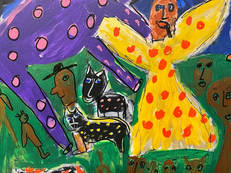 I am a fierce voice for the wisdom of the crones, witches, hags, nature spirits, and those that live on the fringes. My art gives full permission to not paint pretty, nice, perfect. But, to allow the wild indigenous soul to unfurl the mysteries of creation through painting with no attachments to the product but fully present to the process. My painting journey invokes the wisdom of the otherworld to come through, manifesting spirit into matter, because it matters in these times we are living. We have been extremely human-centric; it is time for us to listen to the other voices of creation. It is my hope my paintings will give others permission to fully express their own indigenous soul and be a hollow bone for the wisdom of eternity!